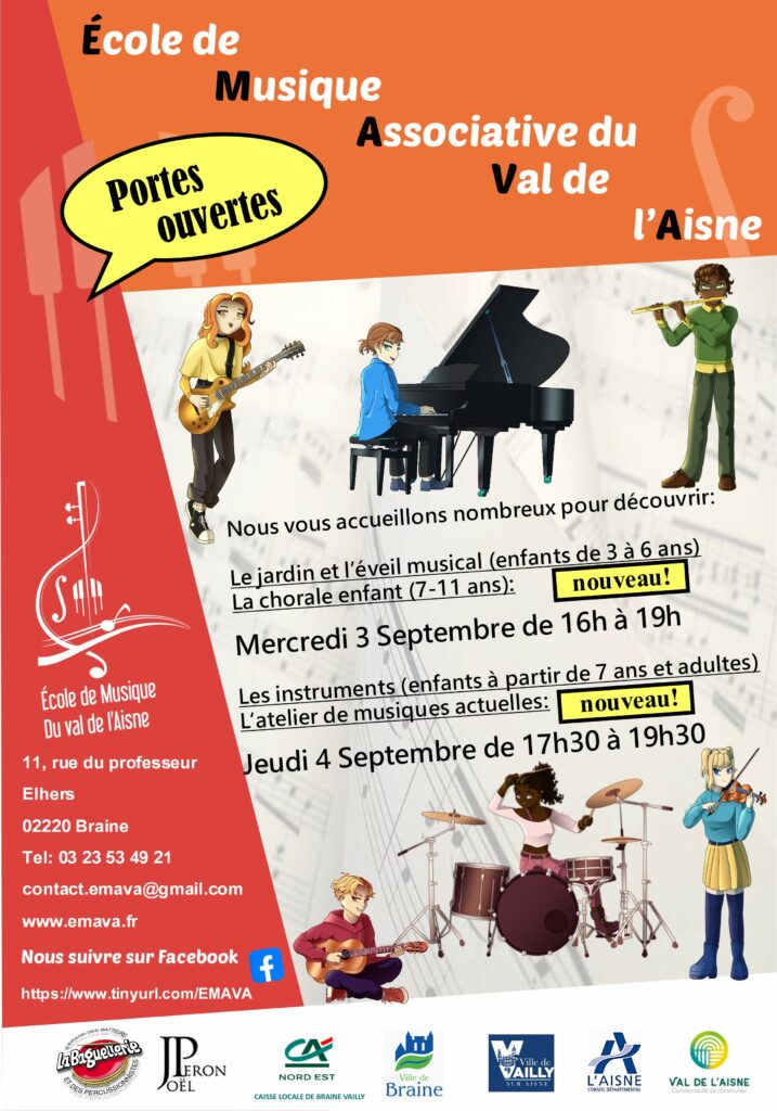 « L’EMAVA est soutenue par le Conseil Départemental de l’Aisne, la Communauté de Communes du Val de l’Aisne, la Ville de Braine, la Ville de Vailly-sur-Aisne, ainsi que le Crédit Agricole Nord-Est (caisse locale Braine-Vailly). »